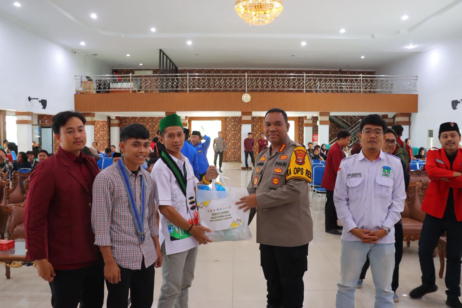 Pada momen tersebut, Kapolresta Bandar Lampung juga menyerahkan bingkisan paket sembako kepada perwakilan OKP Cipayung Plus sebagai bentuk kepedulian dan dukungan terhadap peran aktif pemuda dalam pembangunan.