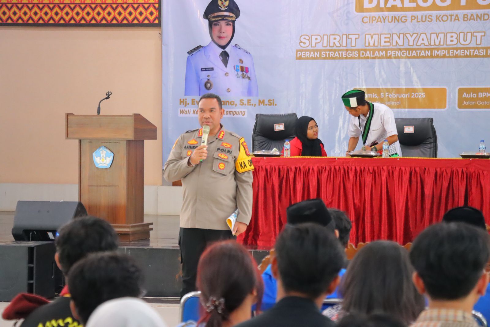 Bandar Lampung – Kapolresta Bandar Lampung, Kombes Pol Alfret Jacob Tilukay menghadiri kegiatan Dialog Publik Cipayung Plus Kota Bandar Lampung yang digelar di Aula BPMP (Balai Penjamin Mutu Pendidikan), Teluk Betung Selatan, Kamis (5/2/2026) sore.