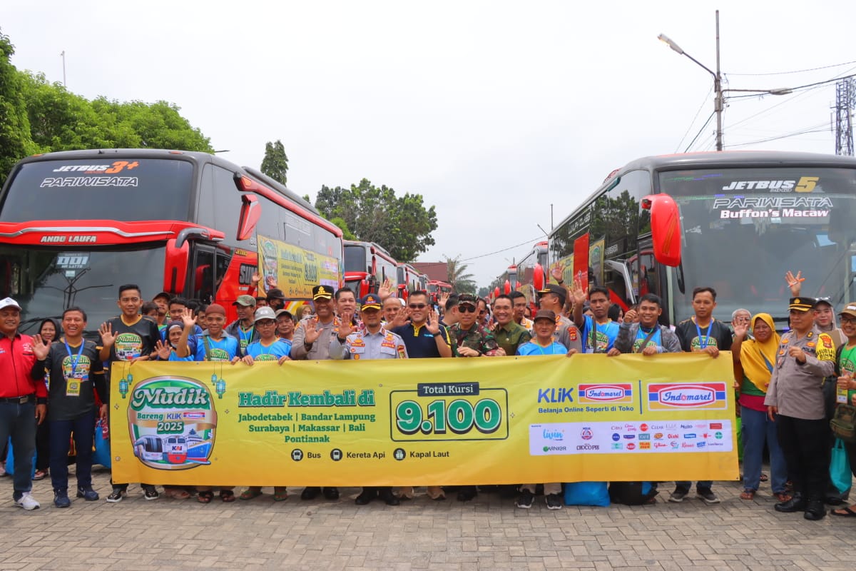 Bandar Lampung – Kapolresta Bandar Lampung, Kombes Pol Alfret Jacob Tilukat, bersama Forum Koordinasi Pimpinan Daerah (Forkopimda) Kota Bandar Lampung melepas keberangkatan peserta program Mudik Gratis Indomaret 2025, Kamis (27/3/2025).Acara pelepasan ini berlangsung di Komplek PKOR Way Halim Bandar Lampung, dengan dihadiri ratusan pemudik yang siap menuju kampung halaman mereka. Sebanyak 800 orang dengan menggunakan 16 bus akan melakukan perjalanan mudik menuju kota Jogja dan Solo.