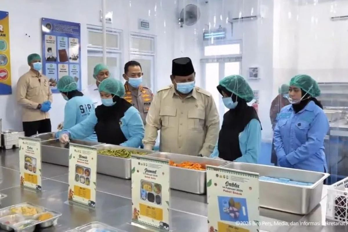 Dalam kesempatan itu, Presiden Prabowo turut meninjau area SPPG dengan mengenakan alat pelindung diri berupa masker, sarung tangan, dan pelindung sepatu.